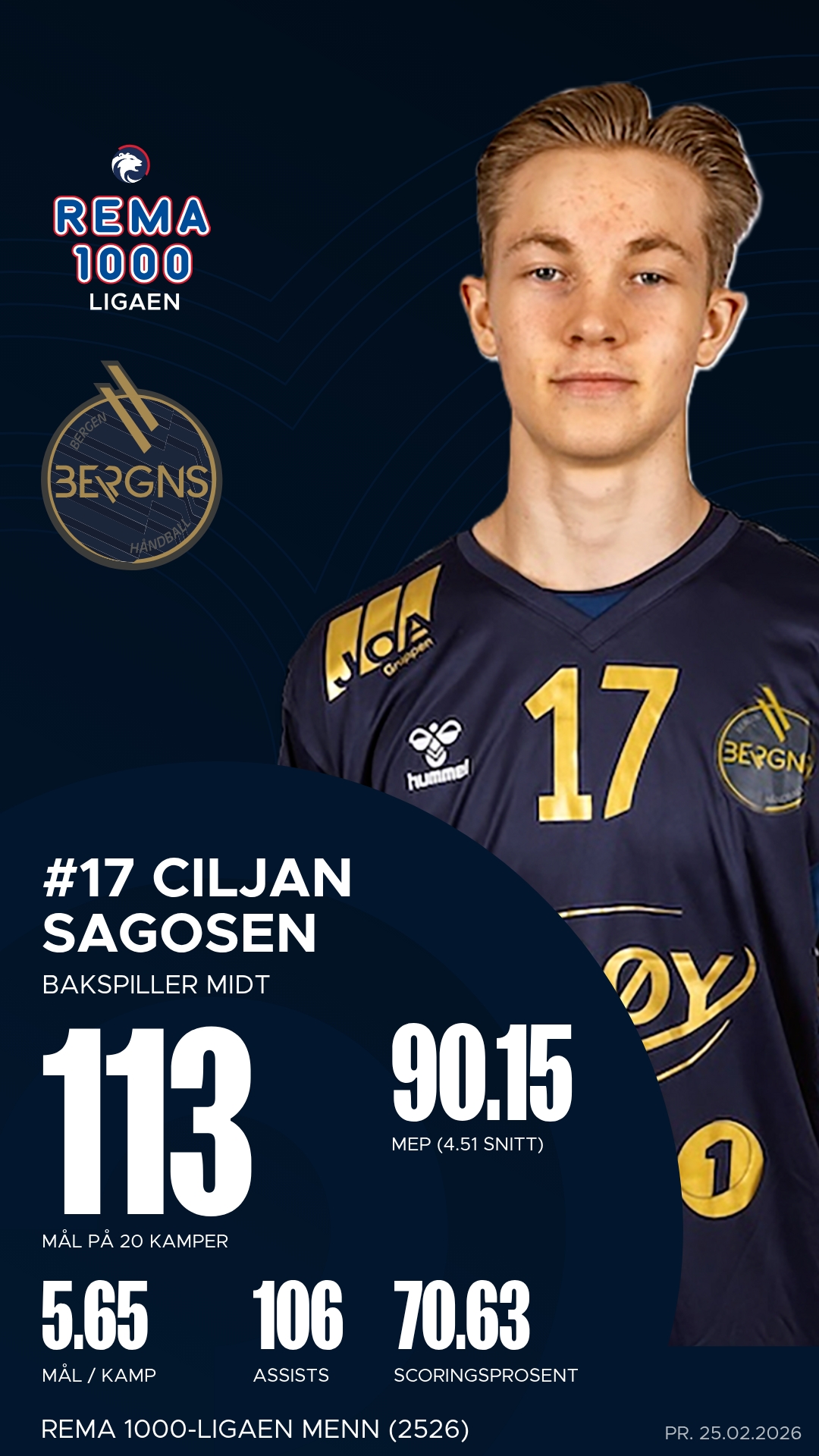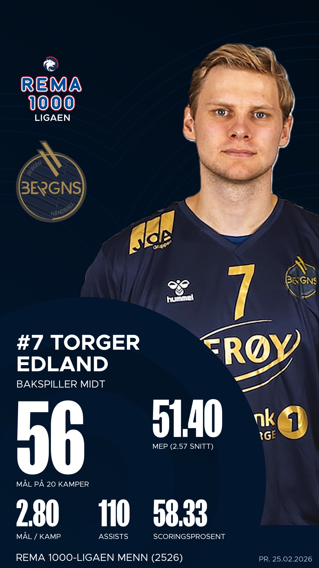 Nicolai Daling ble den mest effektive spilleren på banen for Bergen med hele 12 mål og flere avgjørende bidrag i sluttminuttene. Han fikk god støtte av Torger Edland, som var en motor i angrepsspillet med 13 målgivende pasninger, og av Ciljan Sagosen som styrte rytmen fra midten. Daniel Dimitrijevic leverte en sterk kamp fra venstrekanten med åtte fulltreffere og høy treffsikkerhet.