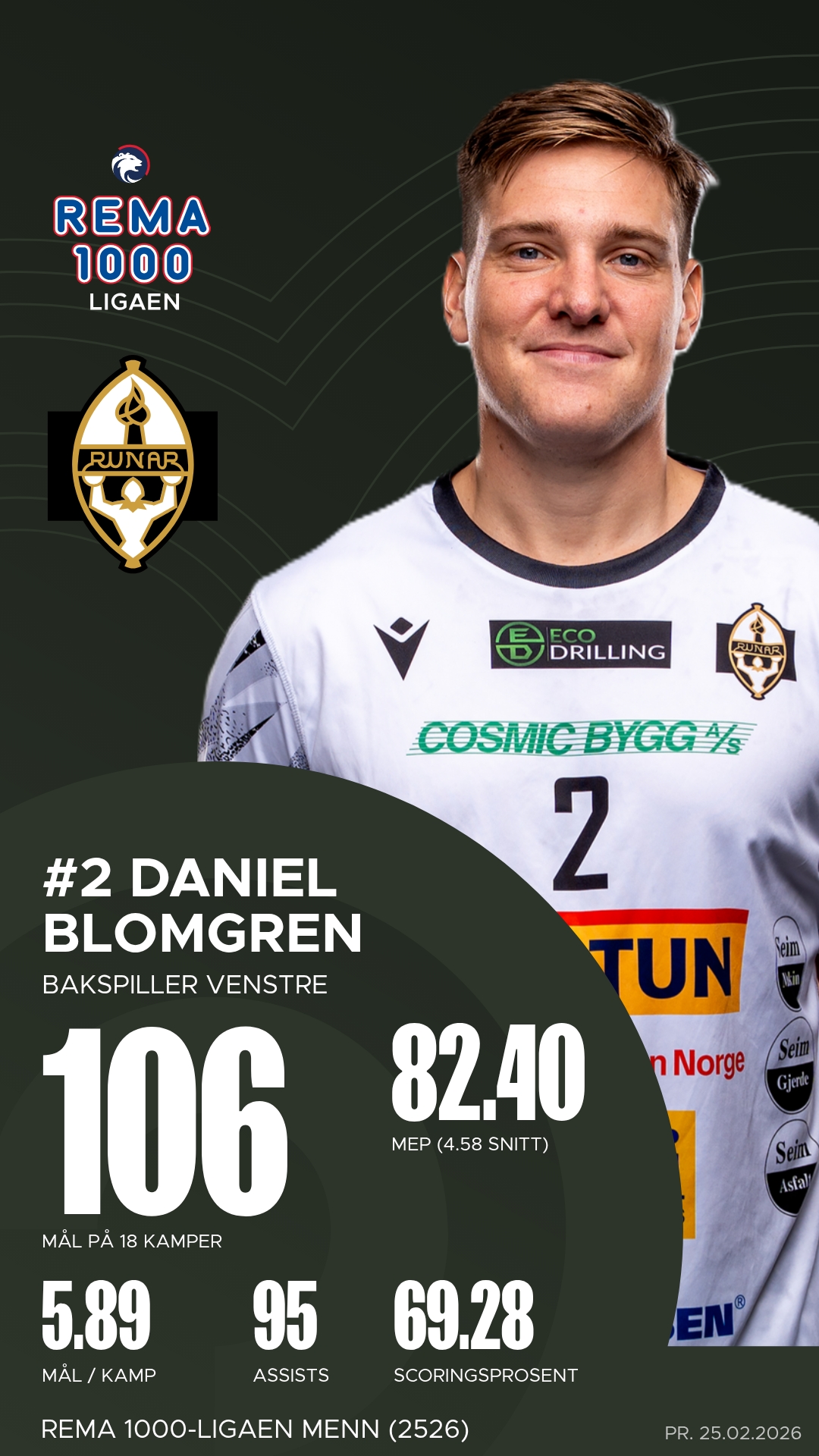 Hos Runar var Daniel Blomgren lagets mest produktive med åtte mål og ni assists, mens Tord Lea Knutsen fulgte tett bak med fem scoringer og hele elleve målgivende pasninger. Christoffer Rambo var som vanlig en sentral profil med sju mål fra distanse.