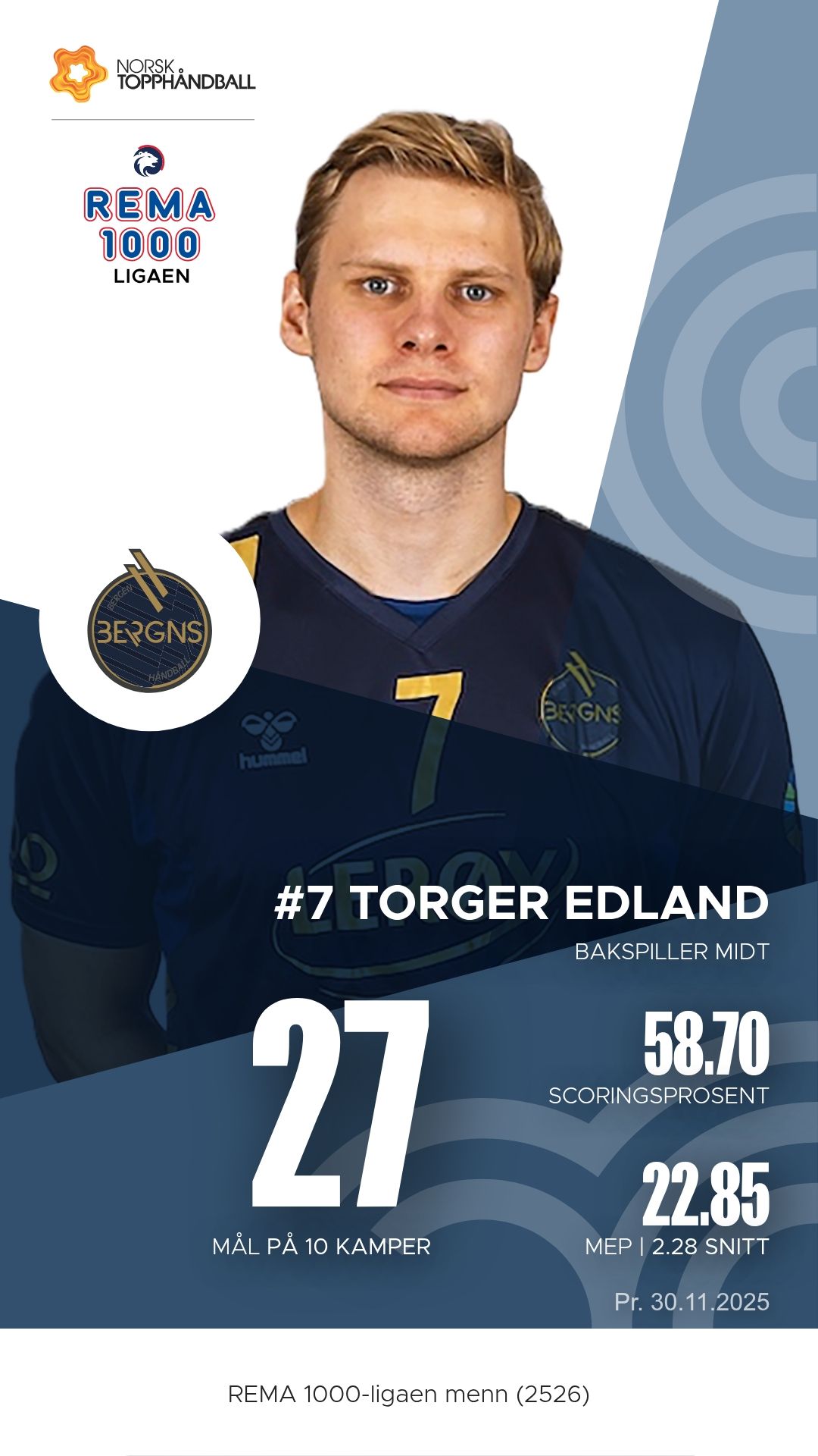 For Bergen er det flere spillere som har vært avgjørende denne sesongen. Kantspilleren Jon Obrestad Salte har vært lagets mest effektive spiller med en imponerende målteft og presisjon fra både kontringer og 7-meter. Bakspiller Ciljan Sagosen har vært motoren i angrepsspillet med både scoringer og et tosifret antall målgivende pasninger i flere kamper. I tillegg har Torger Edland vært en playmaker av høy klasse – med over 60 assists og en ro i spillet som gir laget trygghet i avgjørende situasjoner. Og bakerst står Henrik Ibsen som en bauta i mål, med over hundre redninger og flere kampavgjørende parader.