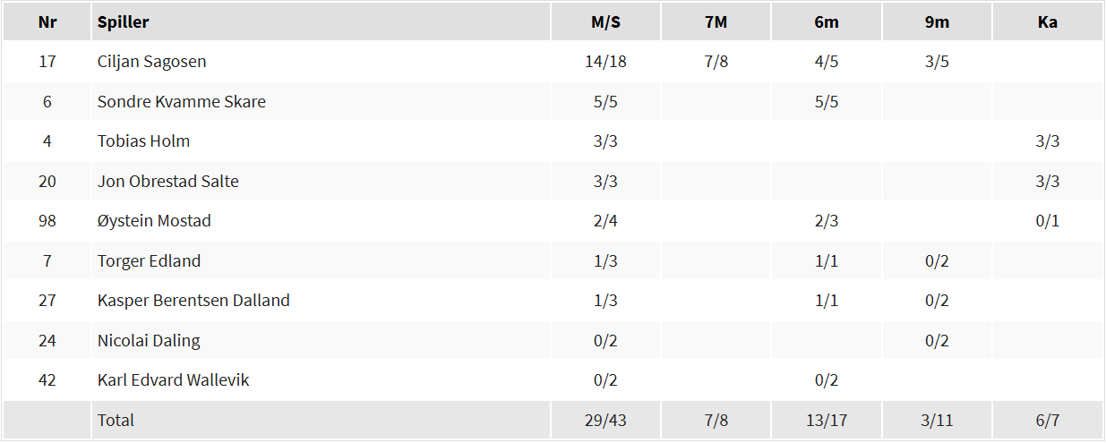 Men Bergen Håndball gir seg aldri og anført av ligaens beste spiller (?) om dagen Ciljan Sagosen, hentet vi inn mål etter mål. Sagosen stoppet ikke før hele 14 scoringer lå i nettet bak en fortumlet Elverum målvakt. Men dessverre kom vi aldri nærmere enn 3 mål bak og ikke nære nok til å stresse Elverumspillerne skikkelig.