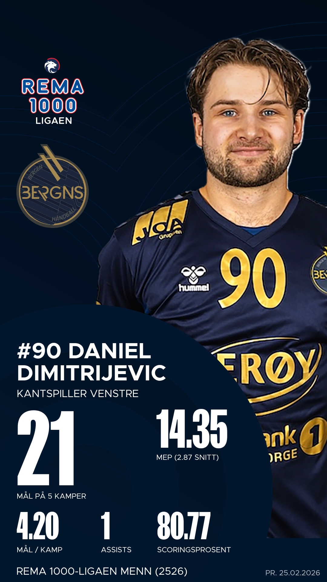 Nicolai Daling ble den mest effektive spilleren på banen for Bergen med hele 12 mål og flere avgjørende bidrag i sluttminuttene. Han fikk god støtte av Torger Edland, som var en motor i angrepsspillet med 13 målgivende pasninger, og av Ciljan Sagosen som styrte rytmen fra midten. Daniel Dimitrijevic leverte en sterk kamp fra venstrekanten med åtte fulltreffere og høy treffsikkerhet.