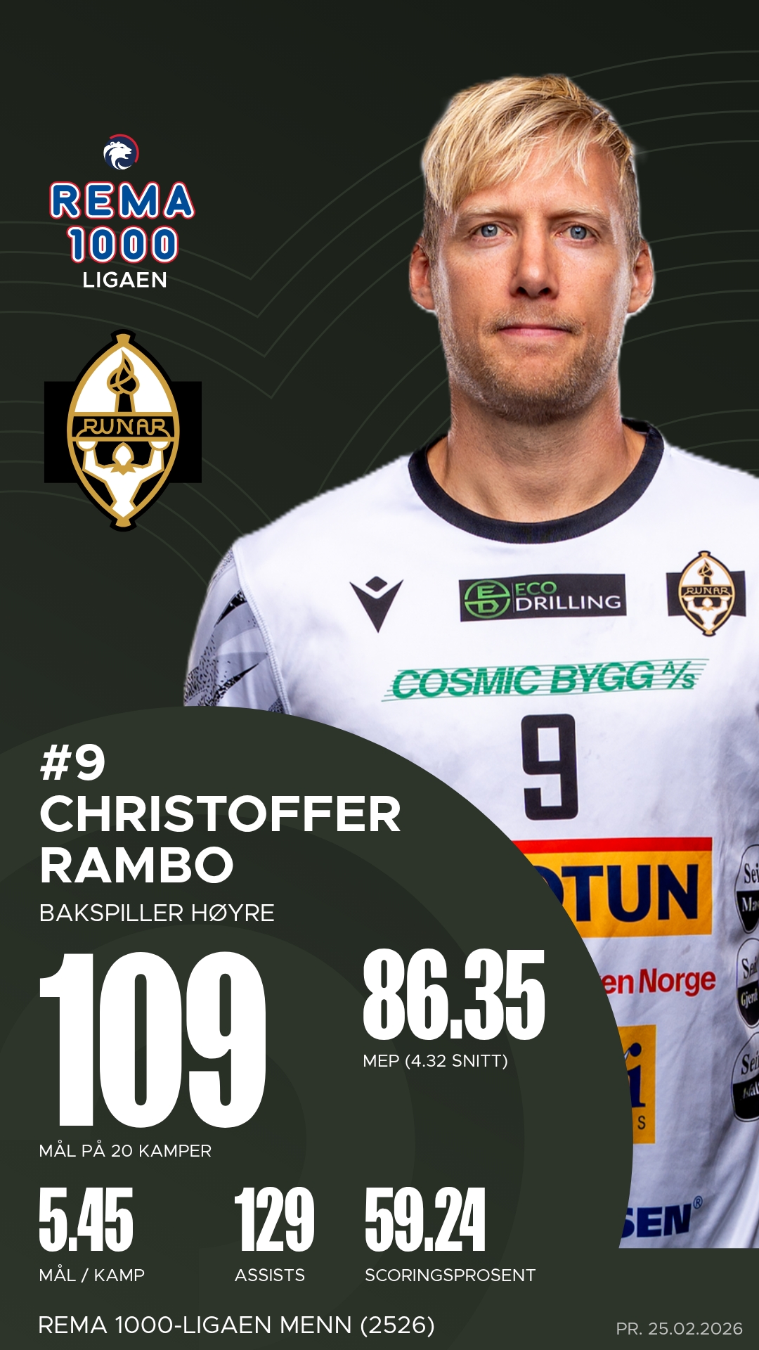 Hos Runar var Daniel Blomgren lagets mest produktive med åtte mål og ni assists, mens Tord Lea Knutsen fulgte tett bak med fem scoringer og hele elleve målgivende pasninger. Christoffer Rambo var som vanlig en sentral profil med sju mål fra distanse.
